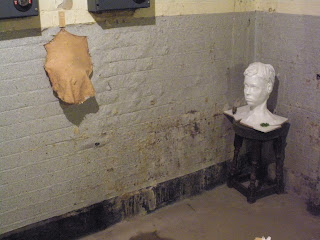 In contrast to PORK I where i created an installation without using any pre-conceived elements, in this case the installation was a mixture of found and already made objects. I installed a white painted sculpture of my head , a latex belly, a curved wood and a few miniature furniture in the corner of an old humid basement. The concepts of balance, birth and viewing were central in this piece.